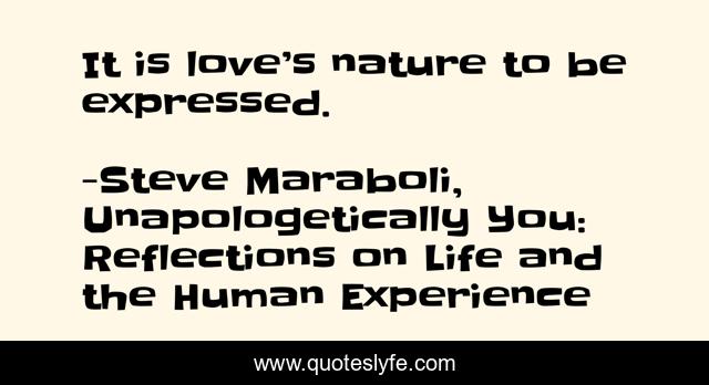 This page presents the quote "It is love’s nature to be expressed.". Author of this quote is Steve Maraboli, Unapologetically You: Reflections on Life and the Human Experience. This quote is about expression, love, affection, nature,.