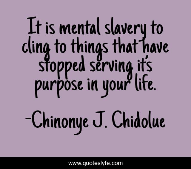 "Chinonye J. Chidolue Quotes." Quoteslyfe.com, 2025. Tue. 09 Dec. 2025. <https://www.quoteslyfe.com/quote/It-is-mental-slavery-to-cling-to-54505>.