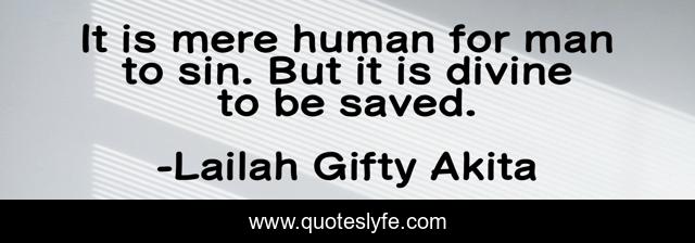 This page presents the quote "It is mere human for man to sin. But it is divine to be saved.". Author of this quote is Lailah Gifty Akita. This quote is about divine, saved-souls, sin,.