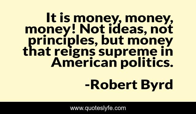 This page presents the quote "It is money, money, money! Not ideas, not principles, but money that reigns supreme in American politics.". Author of this quote is Robert Byrd. This quote is about money, american, ideas,.