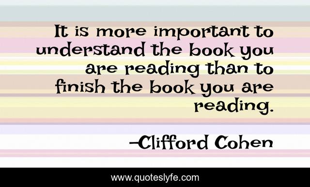This page presents the quote "It is more important to understand the book you are reading than to finish the book you are reading.". Author of this quote is Clifford Cohen. This quote is about savoring-the-moment, gaining-wisdom, understanding, patience, learning, depth-vs-breadth, wisdom, gaining-understanding,.