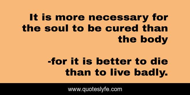 This page presents the quote "It is more necessary for the soul to be cured than the body". Author of this quote is for it is better to die than to live badly.. .