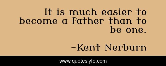 This page presents the quote "It is much easier to become a father than to be one.". Author of this quote is Kent Nerburn. This quote is about become, father, easier,.