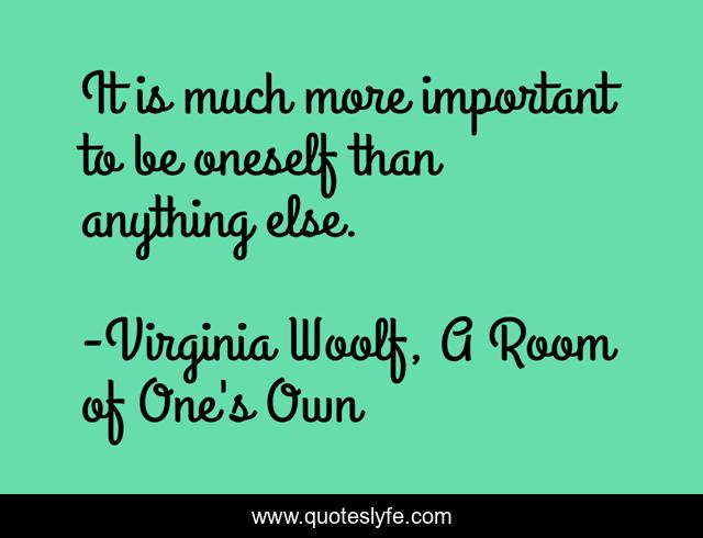 This page presents the quote "It is much more important to be oneself than anything else.". Author of this quote is Virginia Woolf, A Room of One's Own. This quote is about being-oneself, feminism, writing,.