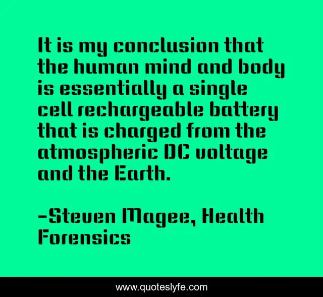 "Steven Magee, Health Forensics Quotes." Quoteslyfe.com, 2025. Mon. 08 Dec. 2025. <https://www.quoteslyfe.com/quote/It-is-my-conclusion-that-the-human-87361>.