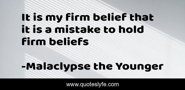 This page presents the quote "It is my firm belief that it is a mistake to hold firm beliefs". Author of this quote is Malaclypse the Younger. This quote is about humor, beliefs,.