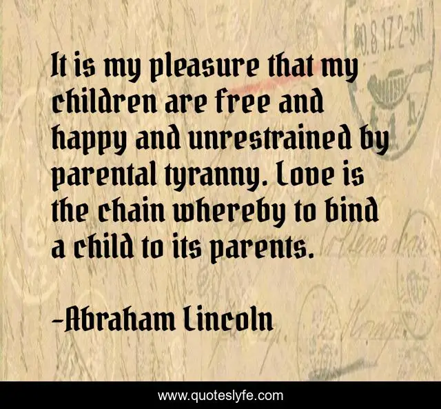 This page presents the quote "It is my pleasure that my children are free and happy and unrestrained by parental tyranny. Love is the chain whereby to bind a child to its parents.". Author of this quote is Abraham Lincoln. .