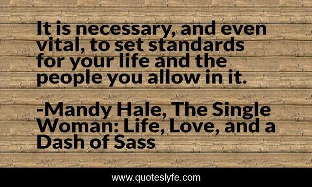 This page presents the quote "It is necessary, and even vital, to set standards for your life and the people you allow in it.". Author of this quote is Mandy Hale, The Single Woman: Life, Love, and a Dash of Sass. This quote is about setting-standards, life, friendship, the-single-woman, not-settling, friends, boundaries, positive-thinking, drama,.