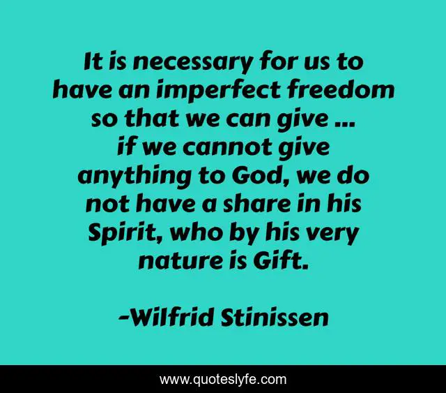 This page presents the quote "It is necessary for us to have an imperfect freedom so that we can give ... if we cannot give anything to God, we do not have a share in his Spirit, who by his very nature is Gift.". Author of this quote is Wilfrid Stinissen. This quote is about freedom, gift,.