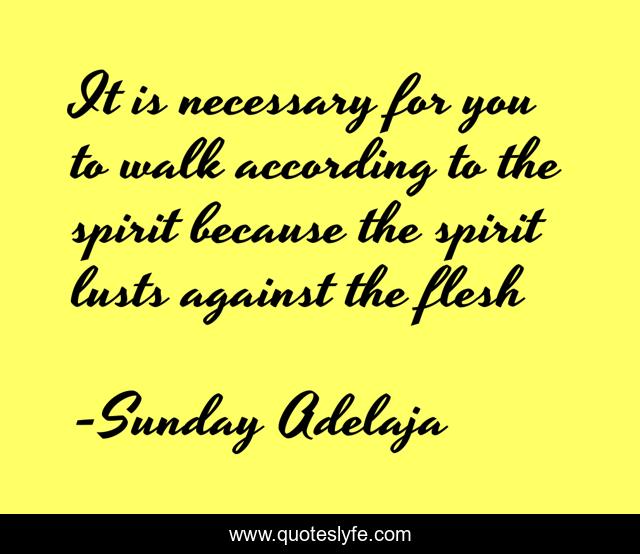 This page presents the quote "It is necessary for you to walk according to the spirit because the spirit lusts against the flesh". Author of this quote is Sunday Adelaja. This quote is about life, calling, purpose, goals, fulfillment,.