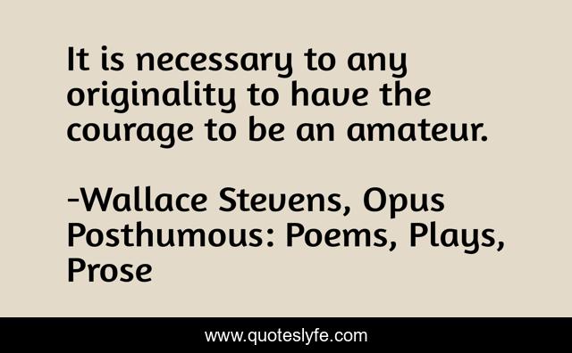 This page presents the quote "It is necessary to any originality to have the courage to be an amateur.". Author of this quote is Wallace Stevens, Opus Posthumous: Poems, Plays, Prose. This quote is about originality, courage,.