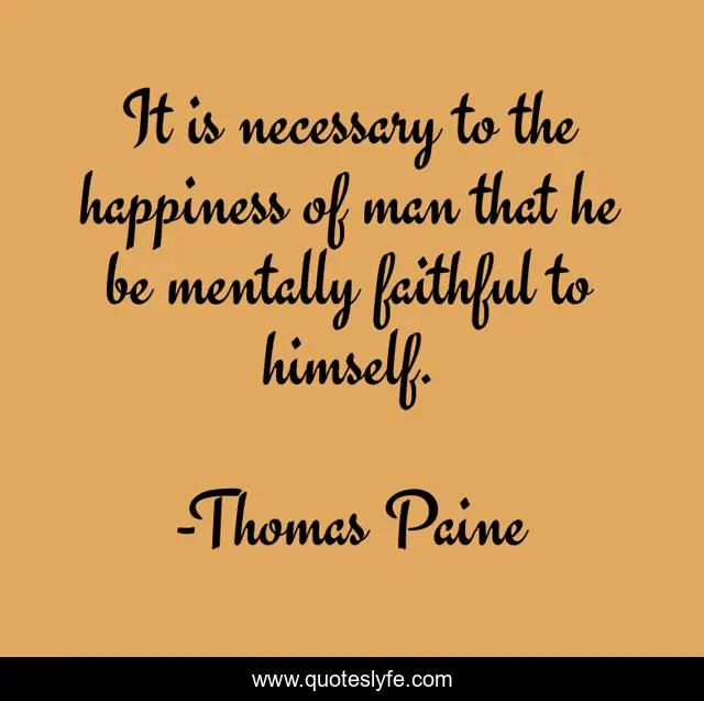 This page presents the quote "It is necessary to the happiness of man that he be mentally faithful to himself.". Author of this quote is Thomas Paine. .
