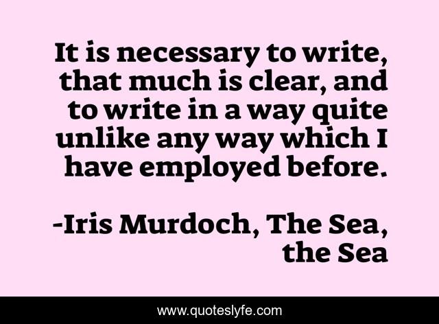 This page presents the quote "It is necessary to write, that much is clear, and to write in a way quite unlike any way which I have employed before.". Author of this quote is Iris Murdoch, The Sea, the Sea. This quote is about writing, writers, honesty, truth, self-deception,.
