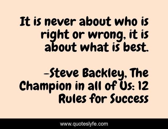 "Steve Backley, The Champion in all of Us: 12 Rules for Success Quotes." Quoteslyfe.com, 2025. Mon. 08 Dec. 2025. <https://www.quoteslyfe.com/quote/It-is-never-about-who-is-right-32335>.