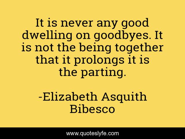 This page presents the quote "It is never any good dwelling on goodbyes. It is not the being together that it prolongs it is the parting.". Author of this quote is Elizabeth Asquith Bibesco. This quote is about positive, confidence, creating, change,.
