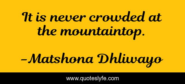"Matshona Dhliwayo Quotes." Quoteslyfe.com, 2025. Sat. 06 Dec. 2025. <https://www.quoteslyfe.com/quote/It-is-never-crowded-at-the-mountaintop-109185>.