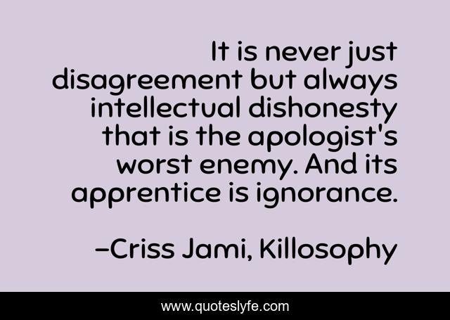 "Criss Jami, Killosophy Quotes." Quoteslyfe.com, 2025. Sun. 07 Dec. 2025. <https://www.quoteslyfe.com/quote/It-is-never-just-disagreement-but-always-166725>.