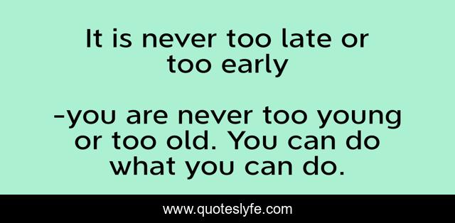 "you are never too young or too old. You can do what you can do. Quotes." Quoteslyfe.com, 2025. Fri. 05 Dec. 2025. <https://www.quoteslyfe.com/quote/It-is-never-too-late-or-too-129466>.