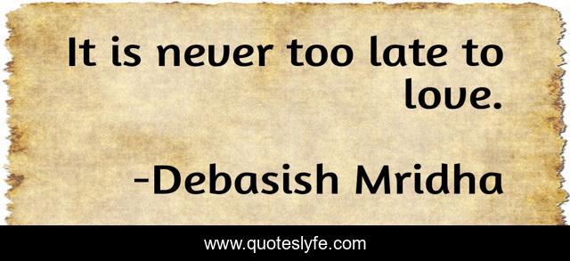 "Debasish Mridha Quotes." Quoteslyfe.com, 2025. Fri. 05 Dec. 2025. <https://www.quoteslyfe.com/quote/It-is-never-too-late-to-love-69718>.