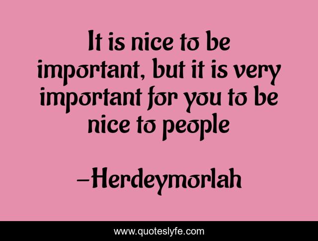 This page presents the quote "It is nice to be important, but it is very important for you to be nice to people". Author of this quote is Herdeymorlah. .