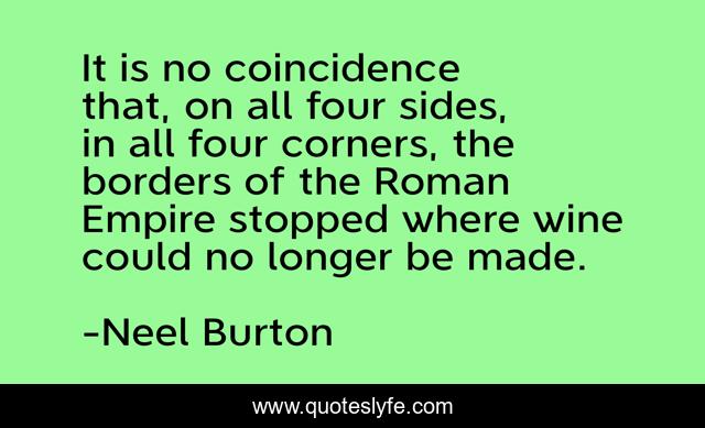 This page presents the quote "It is no coincidence that, on all four sides, in all four corners, the borders of the Roman Empire stopped where wine could no longer be made.". Author of this quote is Neel Burton. This quote is about roman-empire, history, rome, viticulture, oenology, wine, civilisation, geography,.