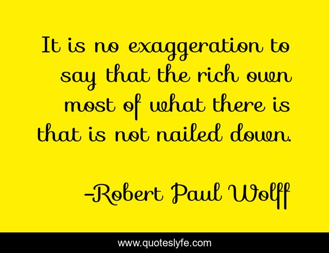 This page presents the quote "It is no exaggeration to say that the rich own most of what there is that is not nailed down.". Author of this quote is Robert Paul Wolff. This quote is about avarice, rich,.