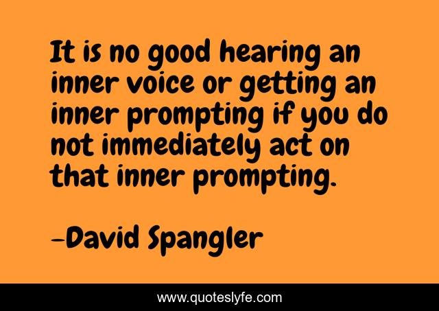 This page presents the quote "It is no good hearing an inner voice or getting an inner prompting if you do not immediately act on that inner prompting.". Author of this quote is David Spangler. This quote is about going, getting,.
