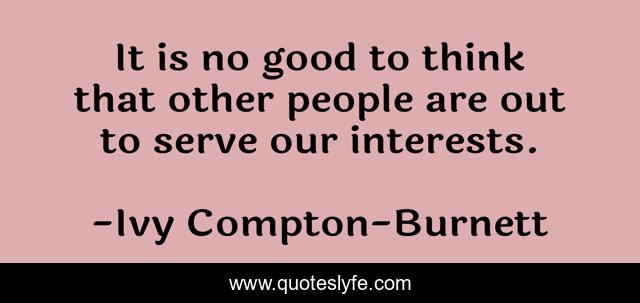 This page presents the quote "It is no good to think that other people are out to serve our interests.". Author of this quote is Ivy Compton-Burnett. This quote is about helping, people,.