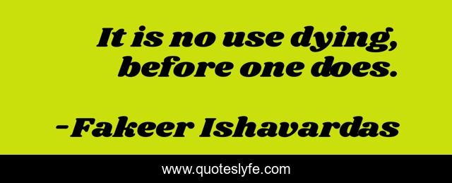 "Fakeer Ishavardas Quotes." Quoteslyfe.com, 2025. Sat. 06 Dec. 2025. <https://www.quoteslyfe.com/quote/It-is-no-use-dying-before-one-37773>.