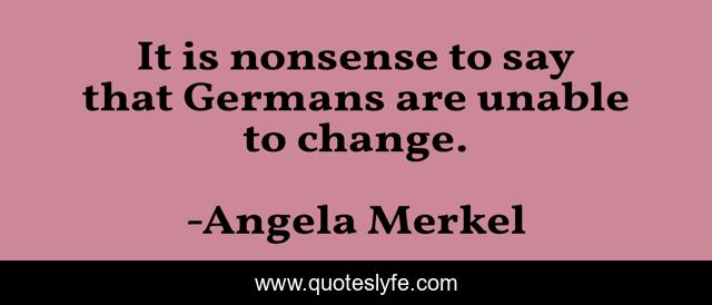 This page presents the quote "It is nonsense to say that Germans are unable to change.". Author of this quote is Angela Merkel. This quote is about nonsense, germans,.