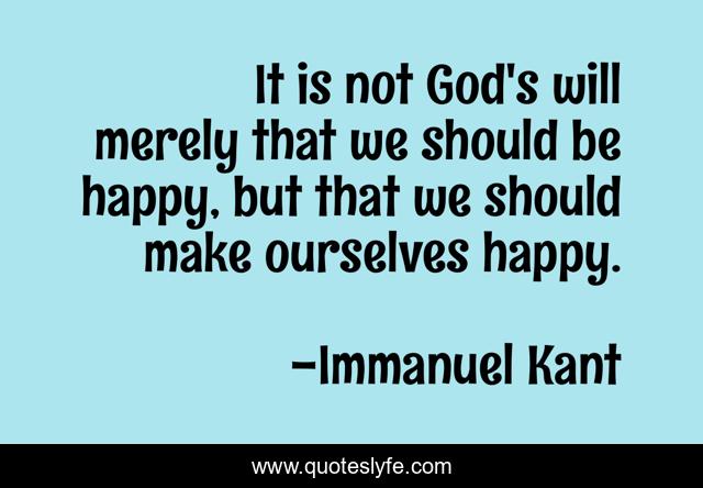 This page presents the quote "It is not God's will merely that we should be happy, but that we should make ourselves happy.". Author of this quote is Immanuel Kant. This quote is about god, happy, be happy,.