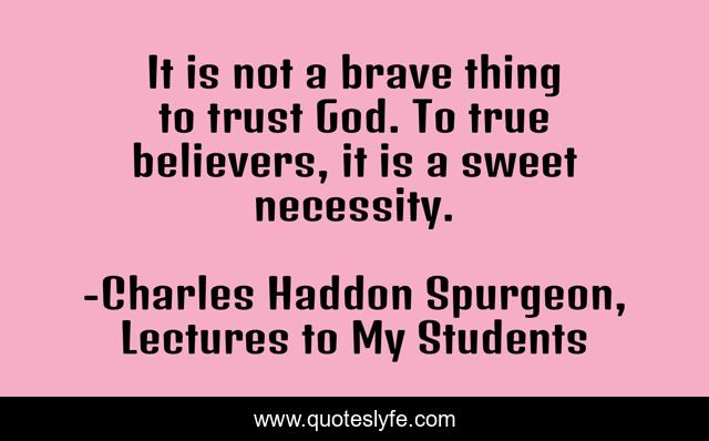 This page presents the quote "It is not a brave thing to trust God. To true believers, it is a sweet necessity.". Author of this quote is Charles Haddon Spurgeon, Lectures to My Students. This quote is about faith, discipleship,.