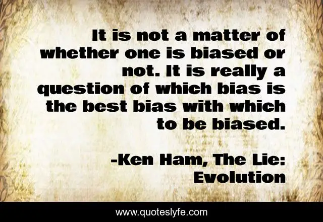 This page presents the quote "It is not a matter of whether one is biased or not. It is really a question of which bias is the best bias with which to be biased.". Author of this quote is Ken Ham, The Lie: Evolution. This quote is about religion, evolution, bias, creation, philosophy,.