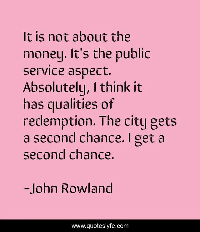 This page presents the quote "It is not about the money. It's the public service aspect. Absolutely, I think it has qualities of redemption. The city gets a second chance. I get a second chance.". Author of this quote is John Rowland. This quote is about money, service, city,.