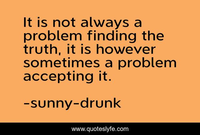 This page presents the quote "It is not always a problem finding the truth, it is however sometimes a problem accepting it.". Author of this quote is sunny-drunk. This quote is about relationships, loss, honesty, truth,.