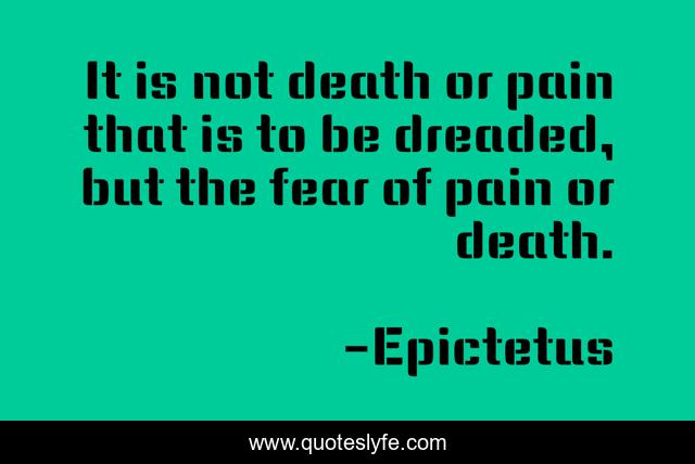 This page presents the quote "It is not death or pain that is to be dreaded, but the fear of pain or death.". Author of this quote is Epictetus. This quote is about pain, fear, dreaded,.