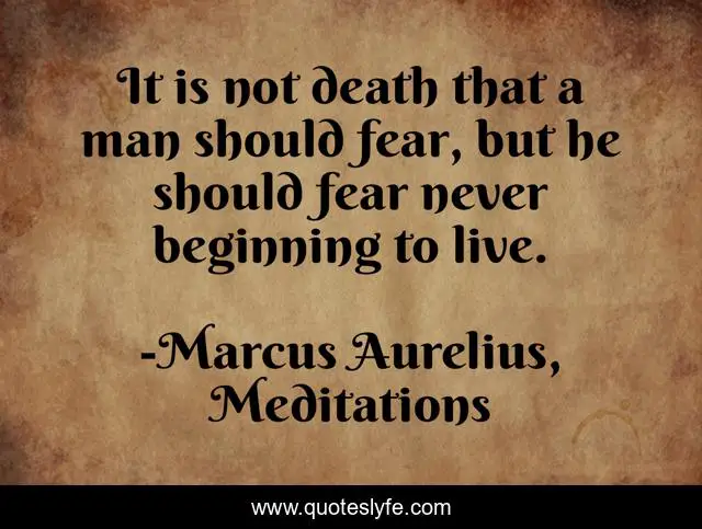This page presents the quote "It is not death that a man should fear, but he should fear never beginning to live.". Author of this quote is Marcus Aurelius, Meditations. This quote is about enthusiasm, fear, death, inspirational,.