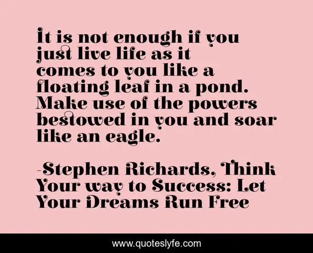 "Stephen Richards, Think Your way to Success: Let Your Dreams Run Free Quotes." Quoteslyfe.com, 2025. Fri. 05 Dec. 2025. <https://www.quoteslyfe.com/quote/It-is-not-enough-if-you-just-36007>.