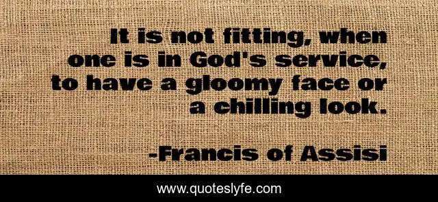 This page presents the quote "It is not fitting, when one is in God's service, to have a gloomy face or a chilling look.". Author of this quote is Francis of Assisi. This quote is about look, service, face,.