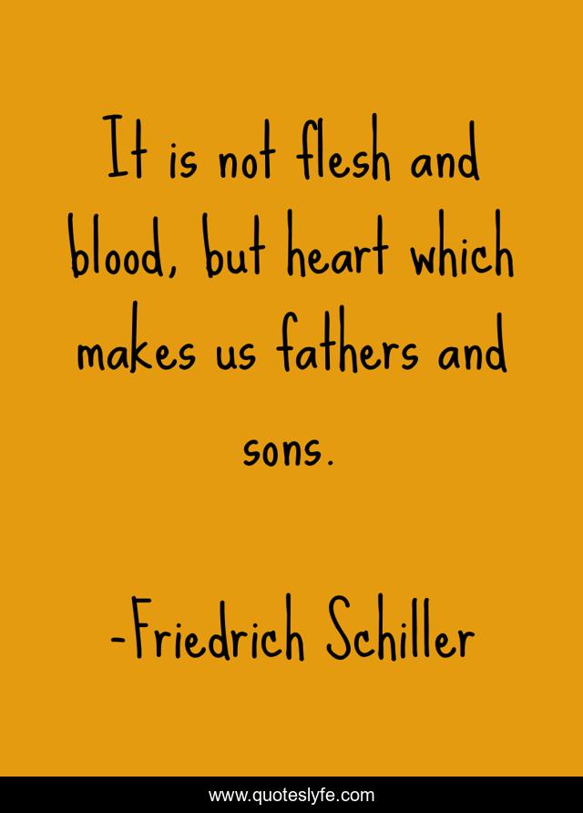 This page presents the quote "It is not flesh and blood, but heart which makes us fathers and sons.". Author of this quote is Friedrich Schiller. This quote is about father, song,.