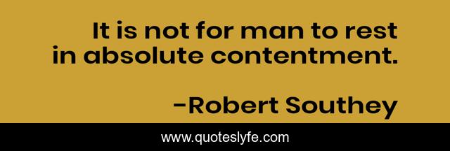 This page presents the quote "It is not for man to rest in absolute contentment.". Author of this quote is Robert Southey. .