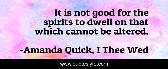 This page presents the quote "It is not good for the spirits to dwell on that which cannot be altered.". Author of this quote is Amanda Quick, I Thee Wed. This quote is about spirit, the-past, the-past-cannot-be-altered,.