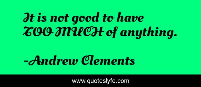This page presents the quote "It is not good to have TOO MUCH of anything.". Author of this quote is Andrew Clements. .