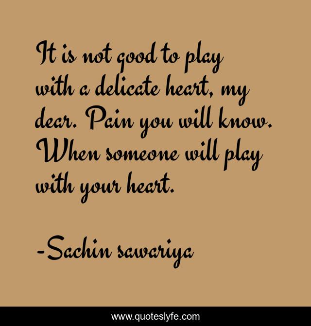 This page presents the quote "It is not good to play with a delicate heart, my dear. Pain you will know. When someone will play with your heart.". Author of this quote is Sachin sawariya. .