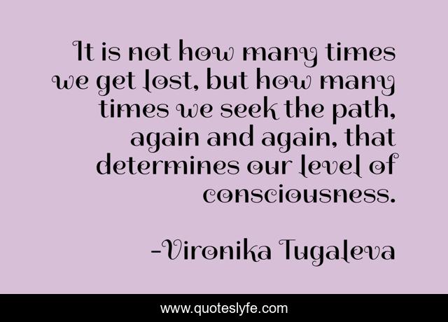 This page presents the quote "It is not how many times we get lost, but how many times we seek the path, again and again, that determines our level of consciousness.". Author of this quote is Vironika Tugaleva. This quote is about self-awareness, consciousness, seeking, self-discovery, failure, awakening, journey, self-improvement, personal-development,.