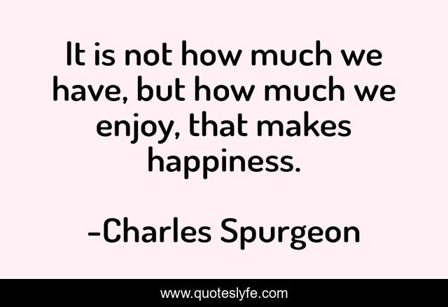 This page presents the quote "It is not how much we have, but how much we enjoy, that makes happiness.". Author of this quote is Charles Spurgeon. This quote is about enjoy, makes,.
