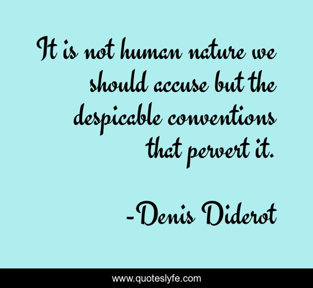 This page presents the quote "It is not human nature we should accuse but the despicable conventions that pervert it.". Author of this quote is Denis Diderot. This quote is about human nature, human,.