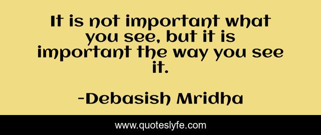 This page presents the quote "It is not important what you see, but it is important the way you see it.". Author of this quote is Debasish Mridha. This quote is about life, debasish, mridha, philosophy, see, important,.