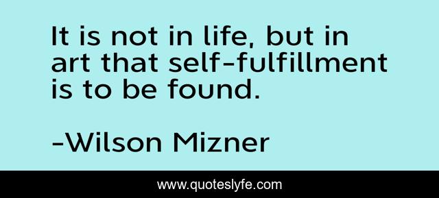 This page presents the quote "It is not in life, but in art that self-fulfillment is to be found.". Author of this quote is Wilson Mizner. This quote is about found, life,.