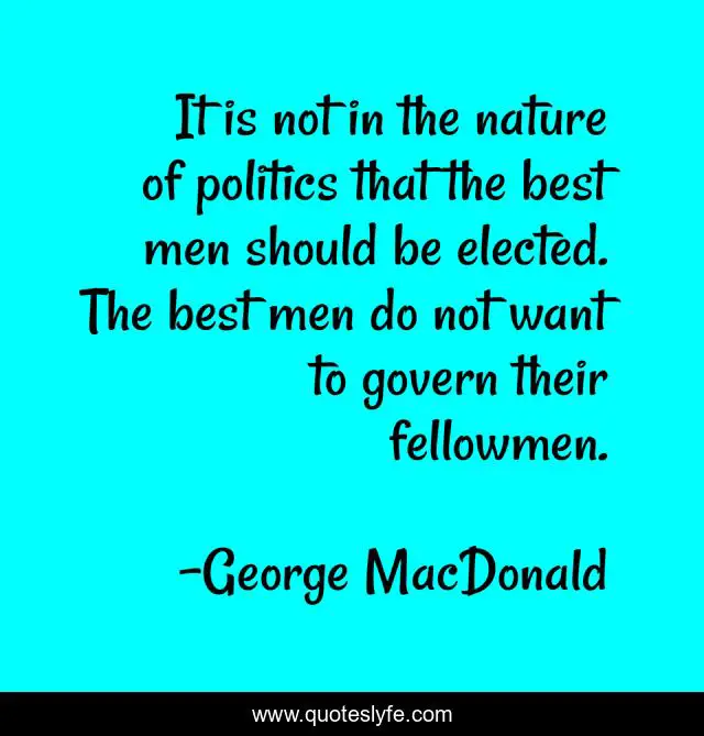This page presents the quote "It is not in the nature of politics that the best men should be elected. The best men do not want to govern their fellowmen.". Author of this quote is George MacDonald. This quote is about politics, men, best,.